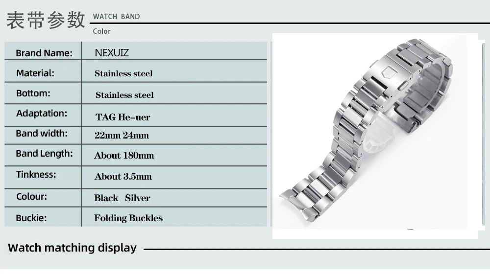 New 22mm 24mm Solid Stainless Steel Watchband Bracelets Silver Black Curved End