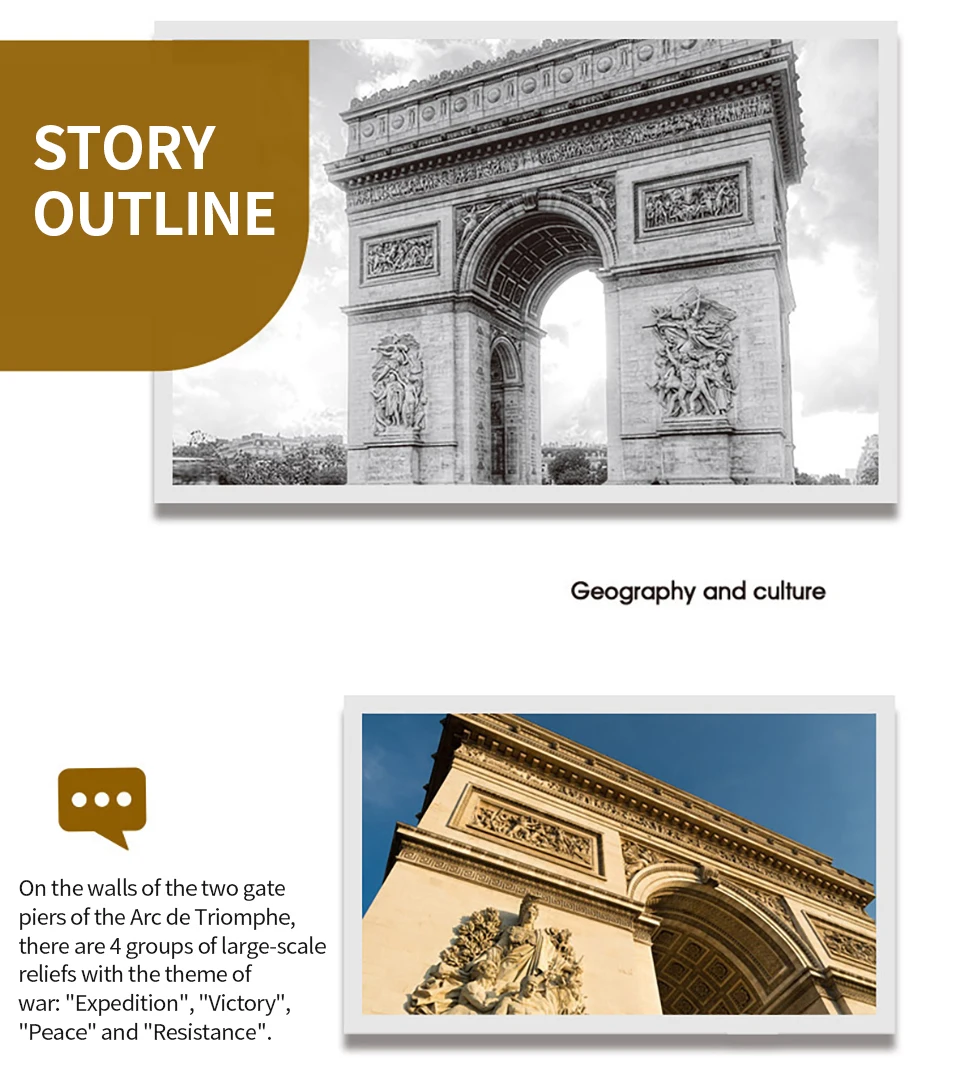 The Arc de Triomphe in Paris, France, stands at the western end of the Champs-Élysées. Designed in 1806 by Napoleon after his victory at Austerlitz, it's a monument to those who fought and died in the French Revolutionary and Napoleonic Wars. Its design was inspired by the Roman Arch of Titus, but it's much larger, standing at about 50 meters high and 45 meters wide. The names of French victories and generals are inscribed on it, and beneath it lies the Tomb of the Unknown Soldier from World War I. It's a significant part of French history and culture.