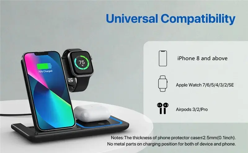 - Universelle Kompatibilität: Kompatibel mit iPhone 13/13 Pro/13 Pro Max/12/12 Pro/12 Pro Max/SE/XR/X/XS/XS Max/11 Pro Max/11/8 Plus/8, Android-Geräten, Apple Watch 8/7/6/5/4/3/2/SE und AirPods Pro/3/2 (nicht kompatibel mit nicht kabellosen AirPods 2).