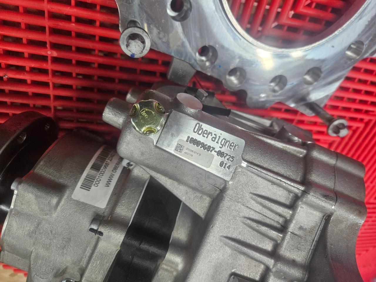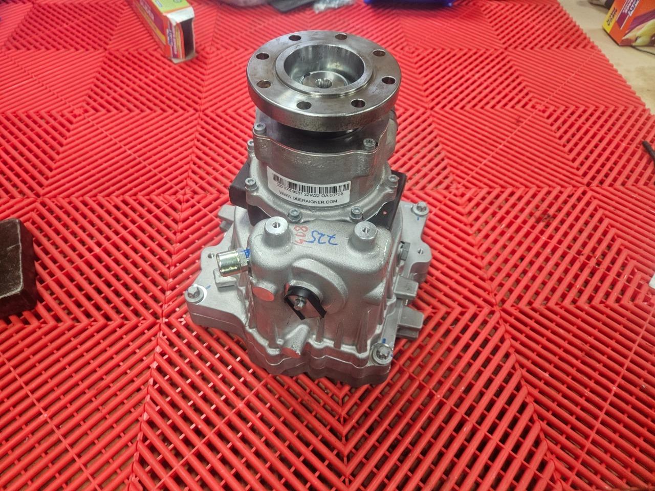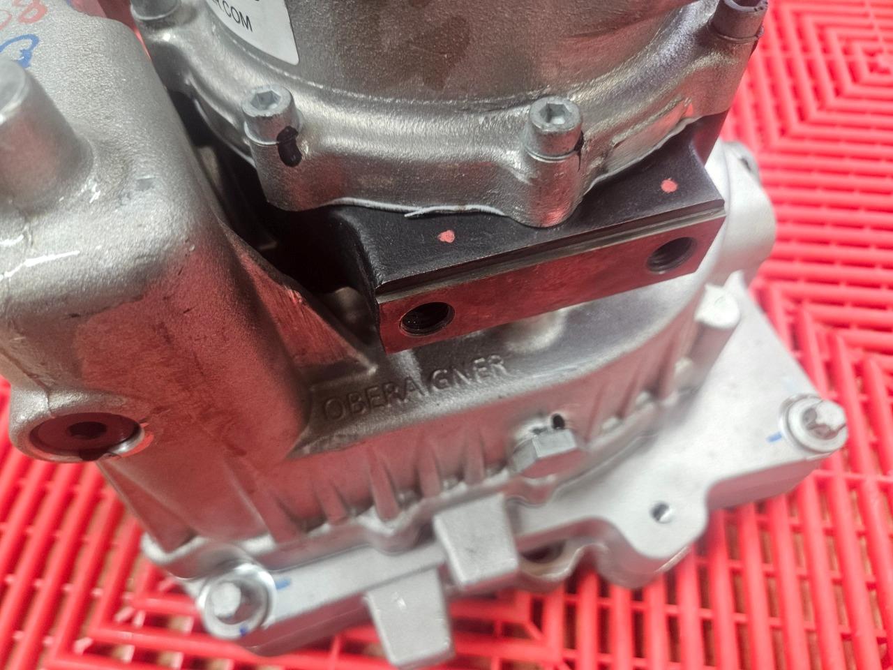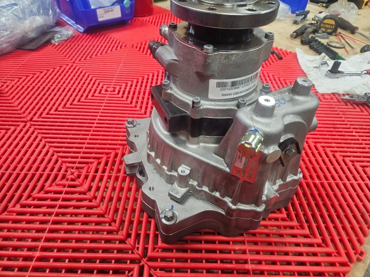 Here are some Oberaigner SEV gear reducers for electric vehicles. This will mount up to motors from Borg Warner, Bosch, Brusa, UQM / Danfoss and others. Further specs are listed above. These were mounted to motors and stored, but were never installed on vehicles and are in like new functional and cosmetic shape as shown. Please note, these were configured for use with an electronic parking brake actuator so the mechanical control arm for the parking break was trimmed as shown. The brake itself still is in new shape and works normally. A new arm would just need to be installed if used with a mechanical brake.