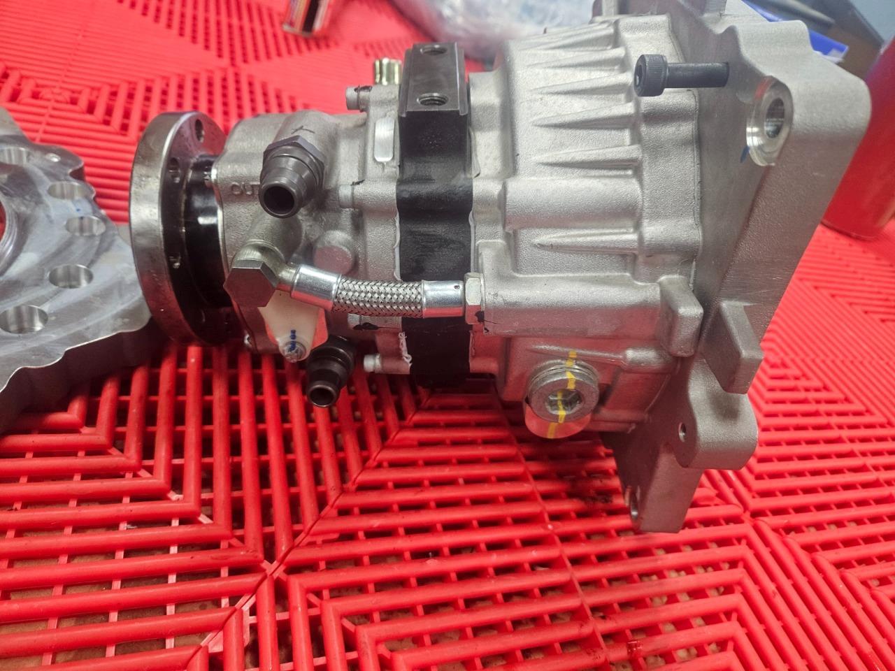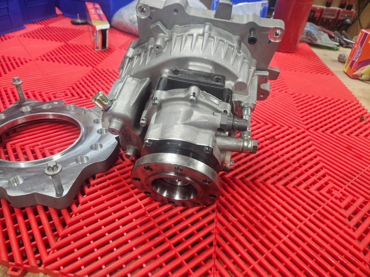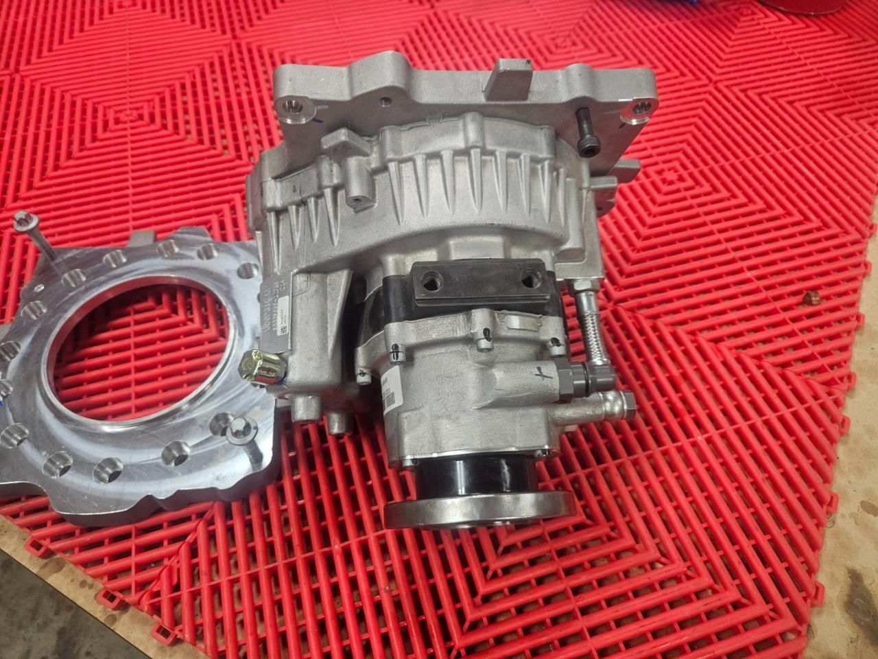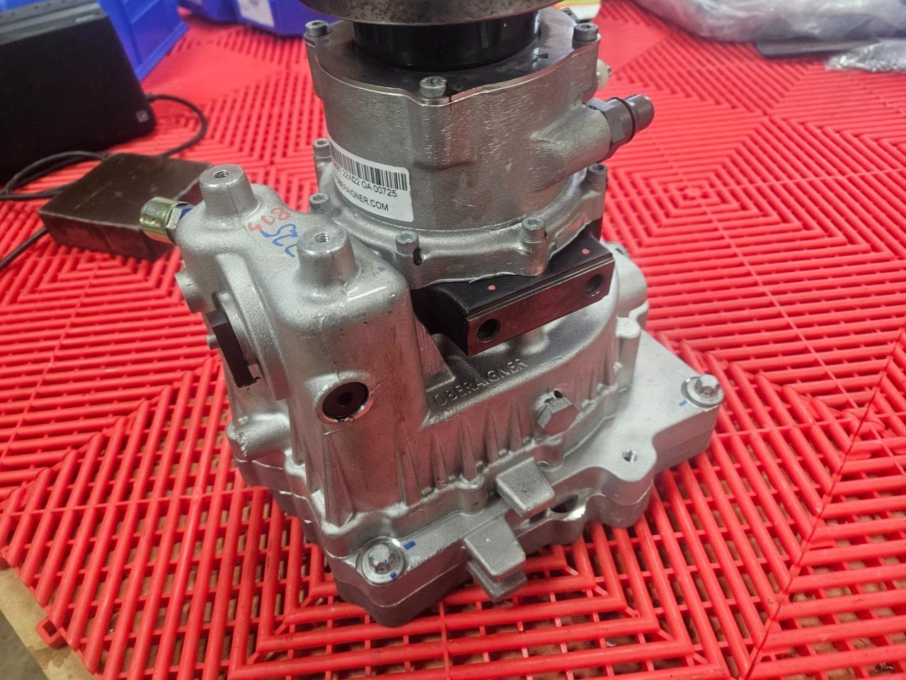 Here are some Oberaigner SEV gear reducers for electric vehicles. This will mount up to motors from Borg Warner, Bosch, Brusa, UQM / Danfoss and others. Further specs are listed above. These were mounted to motors and stored, but were never installed on vehicles and are in like new functional and cosmetic shape as shown. Please note, these were configured for use with an electronic parking brake actuator so the mechanical control arm for the parking break was trimmed as shown. The brake itself still is in new shape and works normally. A new arm would just need to be installed if used with a mechanical brake.