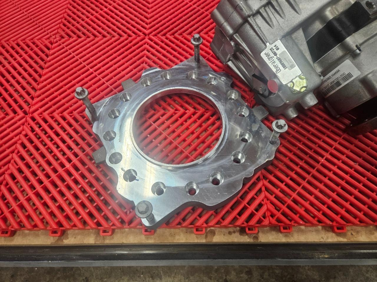 These are complete with adapter plates as shown that will allow them to mount up to many different EV motors.
