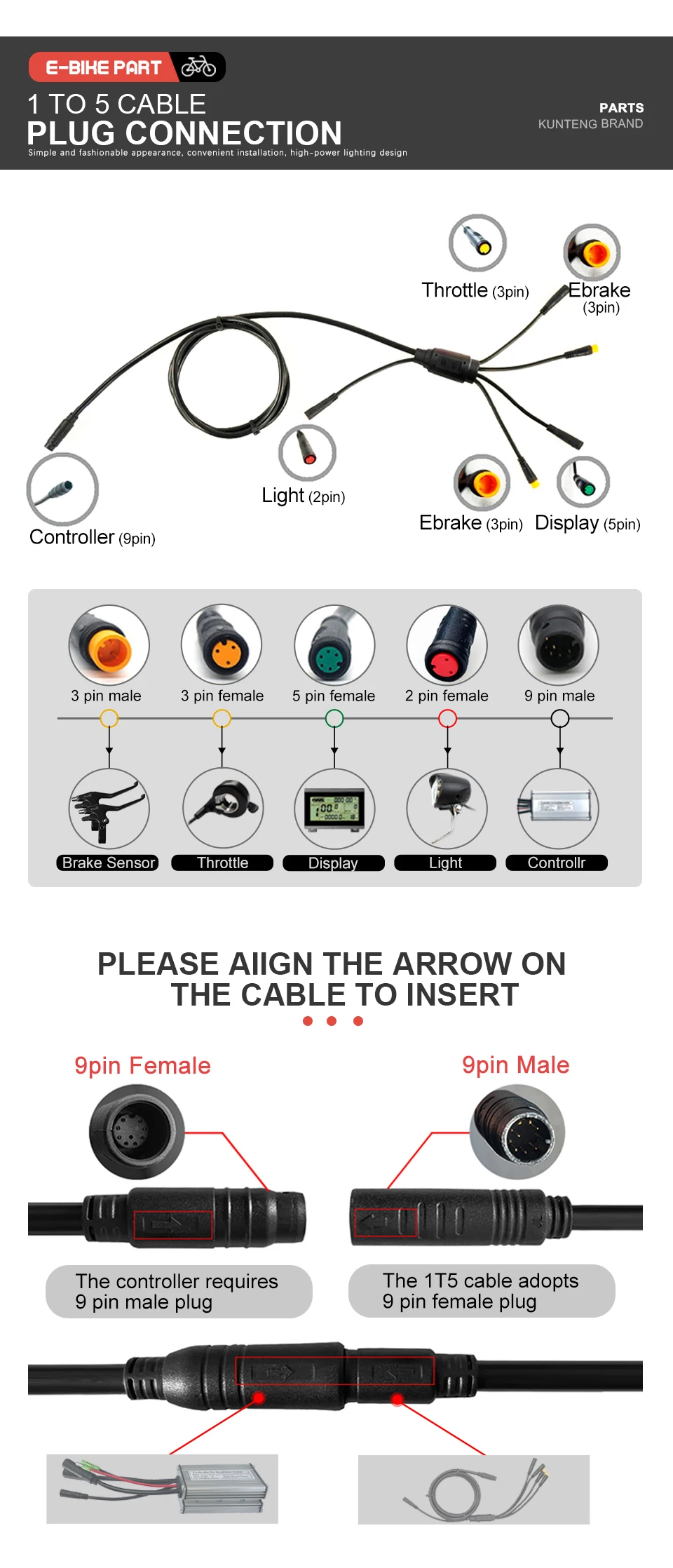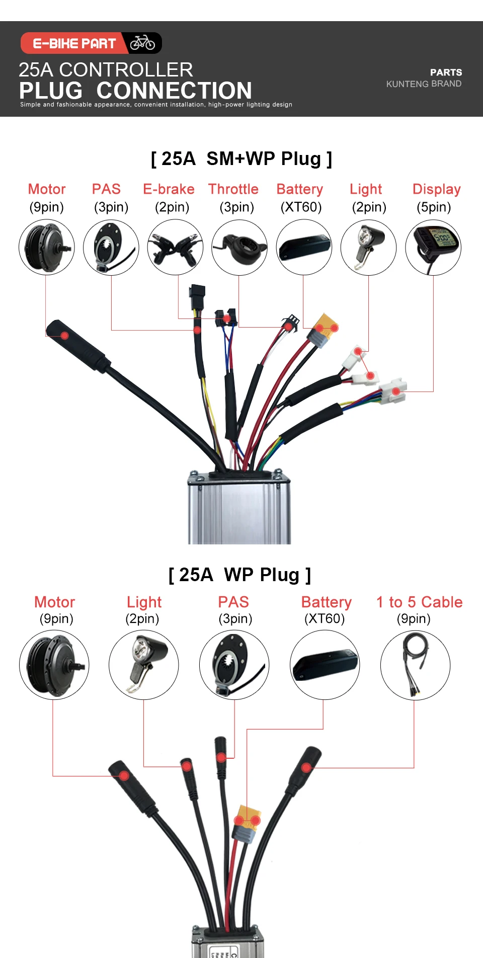 ●1.KT controller only compatible with KT display .Same communication protocol.We have given pictures to teach you how to distinguish.Please check before place the order .
