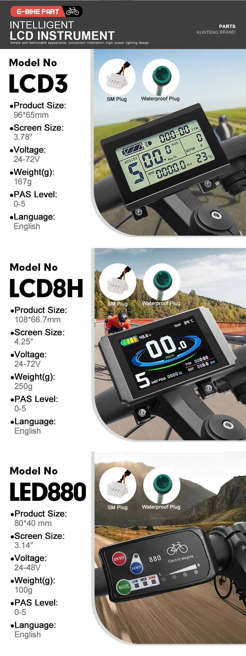 Voltage:24V 36V 48V universal,72V for LCD3/LCD8H