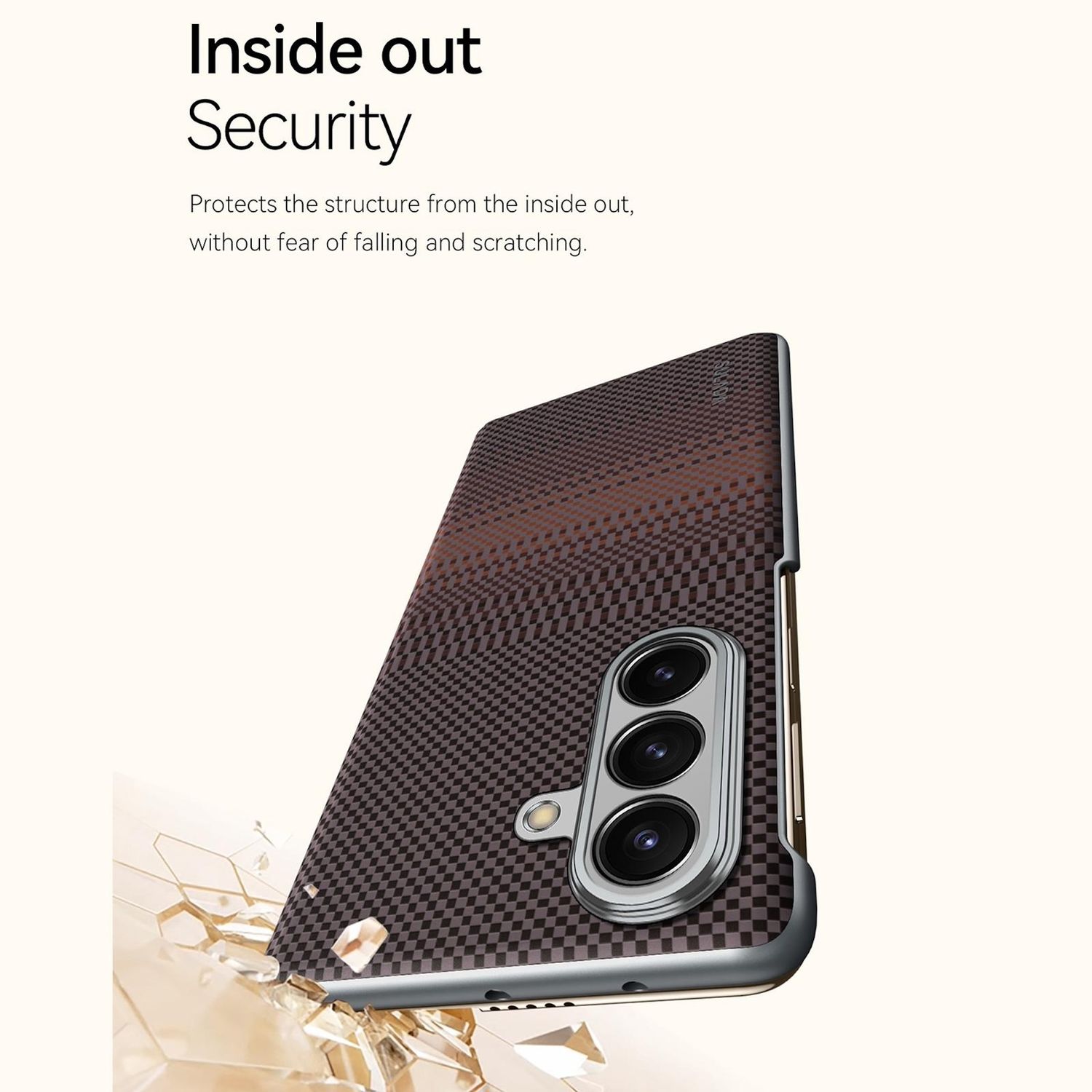 Diese hochwertige Hülle in gewebter Kevlar-Textur verleiht deinem Galaxy Z Fold7 einen modernen Look und zuverlässigen Schutz. Sie ist strapazierfähig, langlebig und schützt dein Smartphone zuverlässig vor Kratzern, Schmutz und alltäglicher Abnutzung. Der integrierte Magnetring unterstützt magnetisches Laden und sorgt für einfache Handhabung mit MagSafe-kompatiblem Zubehör.