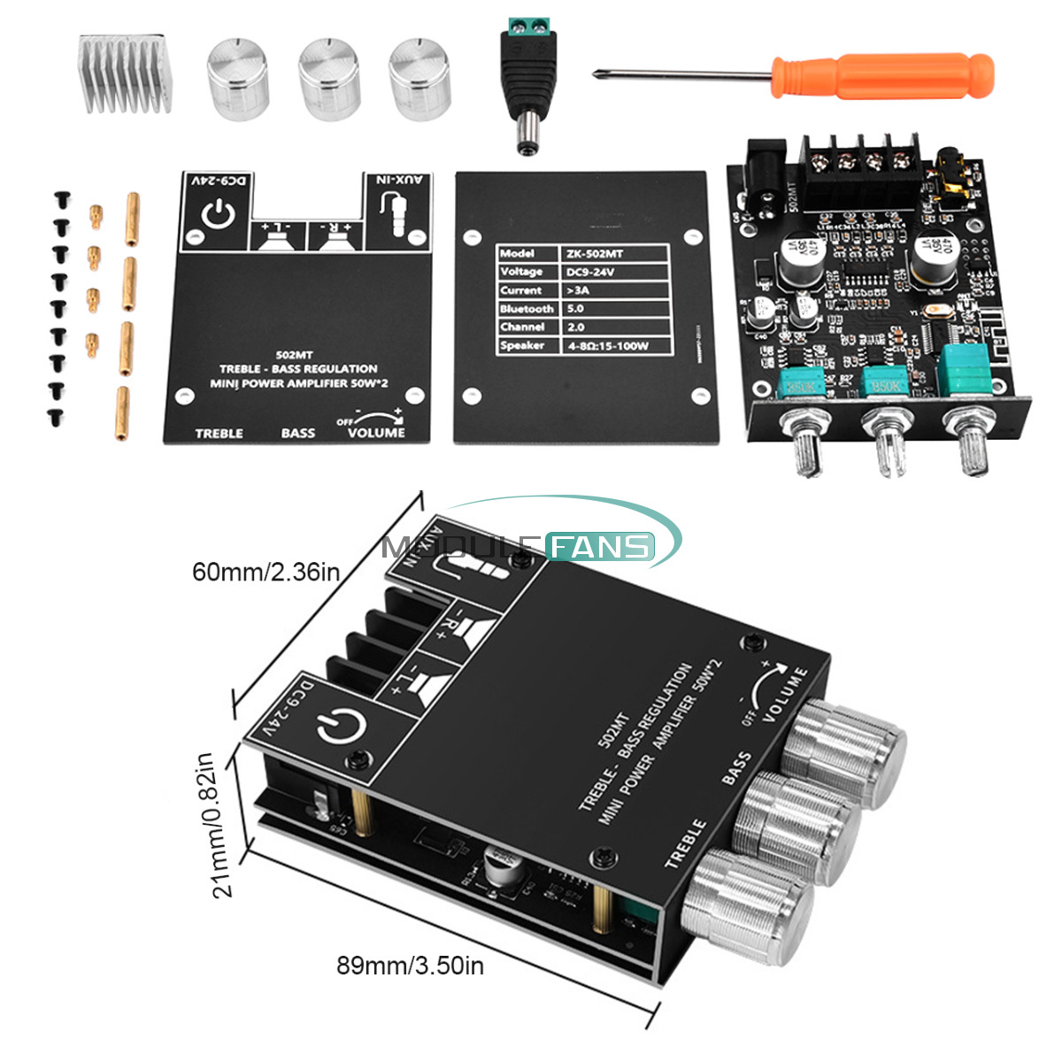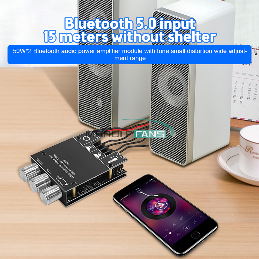 50W * 2 with tone Bluetooth audio amplifier module, small distortion, wide range of adjustment