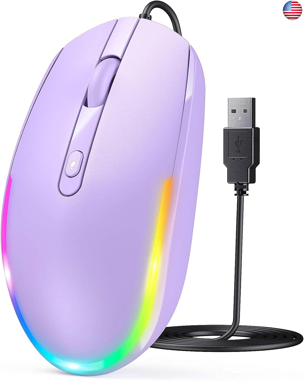 Seenda Wired Mouse - USB Computer Mouse with RGB Backlit Optical LED, Attached USB Cord for Laptops, Notebooks, Chromebook - Purple