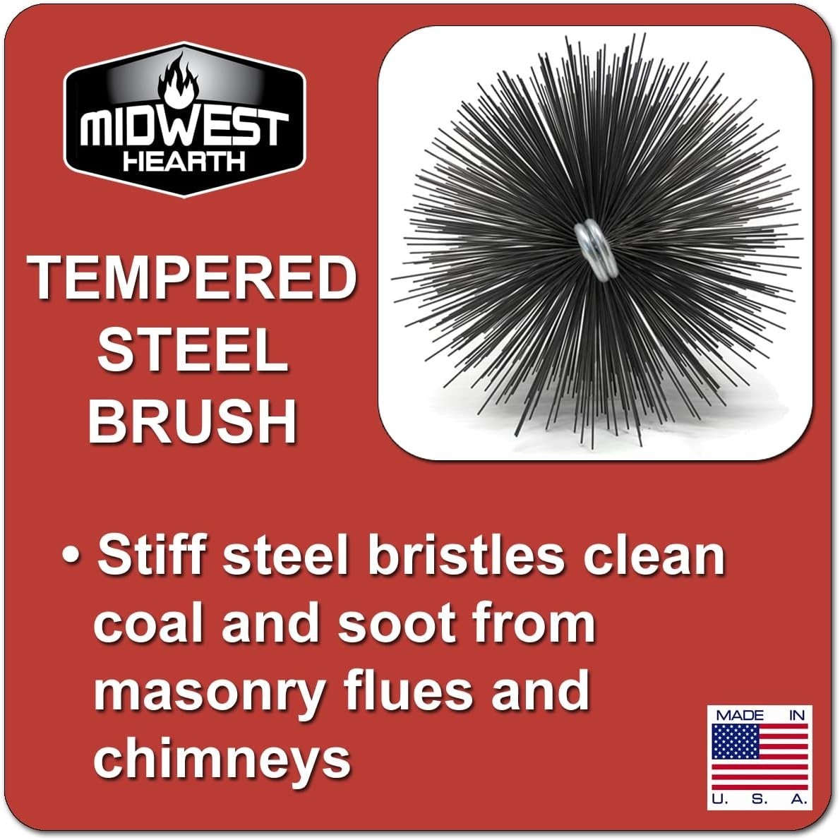 10-Inch Round Chimney Cleaning Brush with Tempered Steel Bristles - Made in USA
