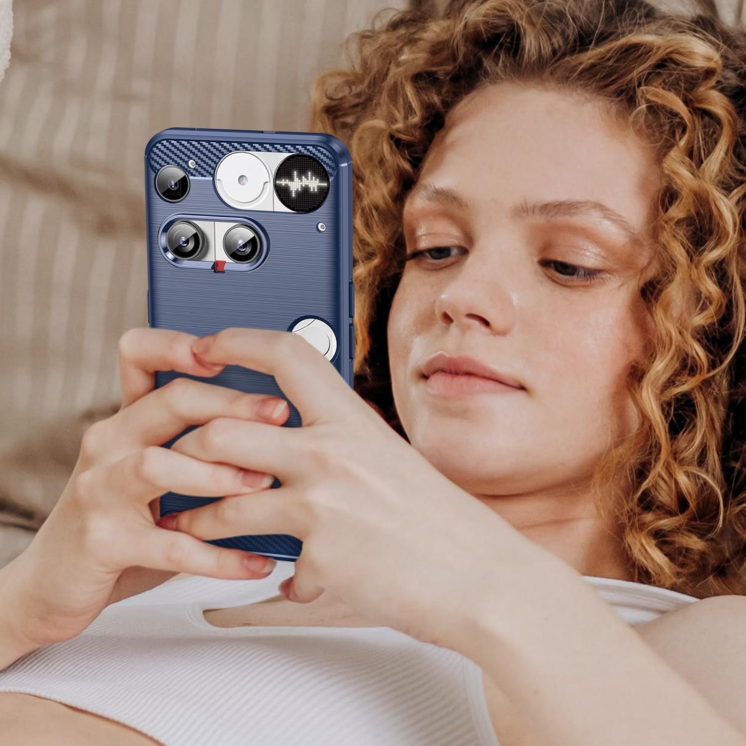Bieten Sie Ihrem Nothing Phone 3 erstklassigen Schutz und einen Hauch von Eleganz mit dieser stoßfesten Handytasche, die eine raffinierte Carbon Textur aufweist. Entwickelt aus hochwertigem TPU-Material, bietet diese Tasche einen robusten Schutz vor Stößen und Kratzern, während sie gleichzeitig Ihr Smartphone stilvoll präsentiert.