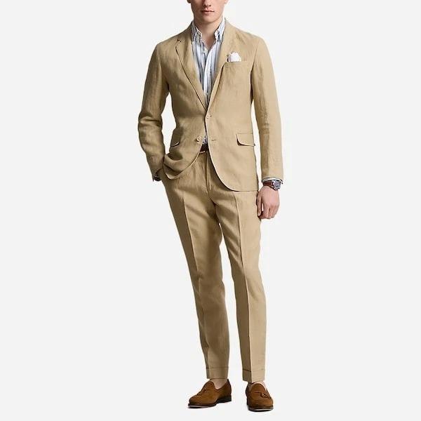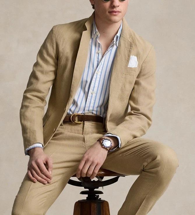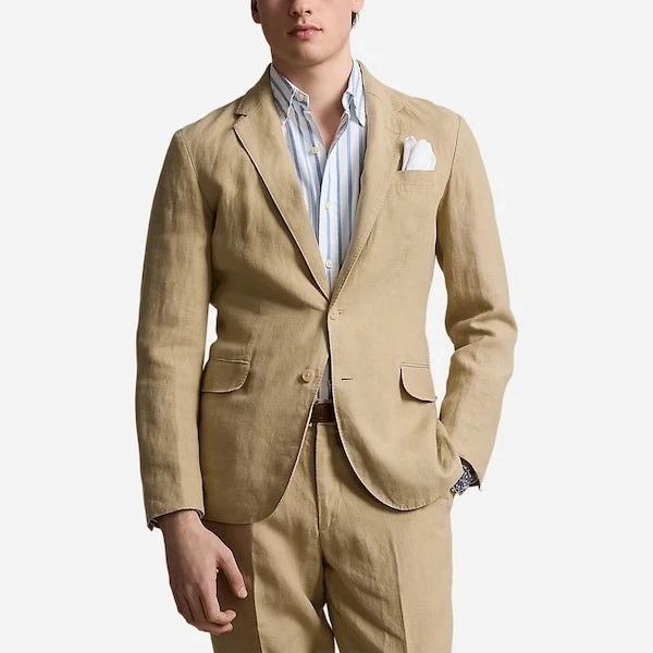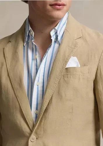 Polo Ralph Lauren's Polo Soft suit jacket puts a modern spin on classic preppy style with a natural shoulder, slightly structured chest and partial lining. This version is crafted with a lightweight linen cloth that was custom-developed for Ralph Lauren.