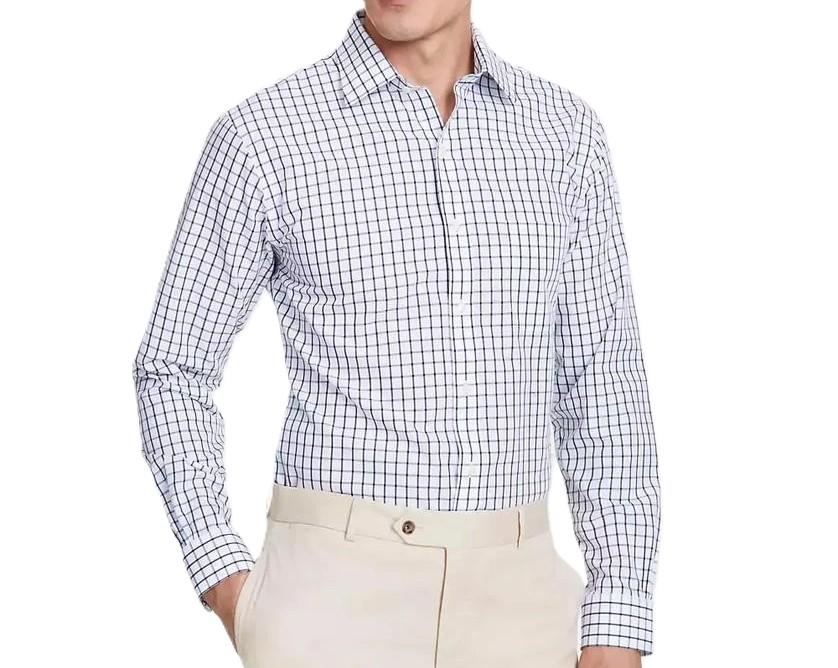 Dedicated to a well-made dress shirt, Brooks Brothers' non-iron windowpane dress shirt is made from 100% cotton broadcloth and comes complete with a signature Ainsley spread collar and pucker-free seams.