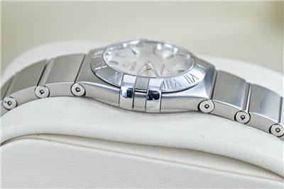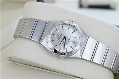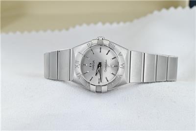 Here we have for sale a genuine Omega Constellation ladies wristwatch that is ready to wear. The watch case is stainless steel with a stainless steel caseback. The watch comes fitted to a stainless steel Omega bracelet that will fit upto a 160mm wrist, with no spare links supplied. The Stainless steel bracelet is in good used condition, with a few light marks from wear. The watch can be adjusted using the Omega signed crown fitted and is running well, keeping excellent time, having an Omega calibre 1376 quartz movement. The serial number can be found on the back of the case, 91447276 along with the words Constellation and the Observatory logo to the centre. The dial is in excellent condition and has a silver finish. The sapphire glass is in excellent condition as are the hands. The watch is supplied without boxes or original papers, but can be verified at any reputable dealer and can be supplied with a watch register certificate and full receipt upon request. The watch measures 24mm in diameter excluding crown.