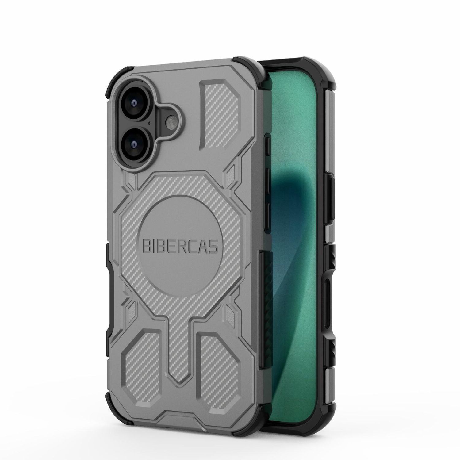 1x BIBERCAS Real Color MagSafe Stoßfeste Schutzhülle in Grau