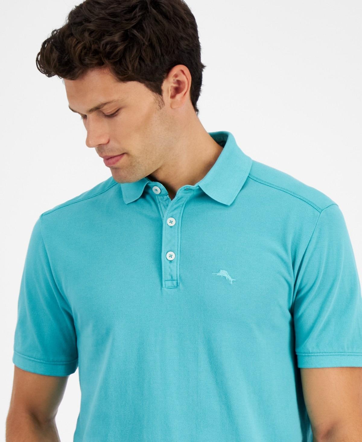 Refresh your essential warm weather wardrobe with this solid Tommy Bahama polo shirt, featuring a cool washed look.