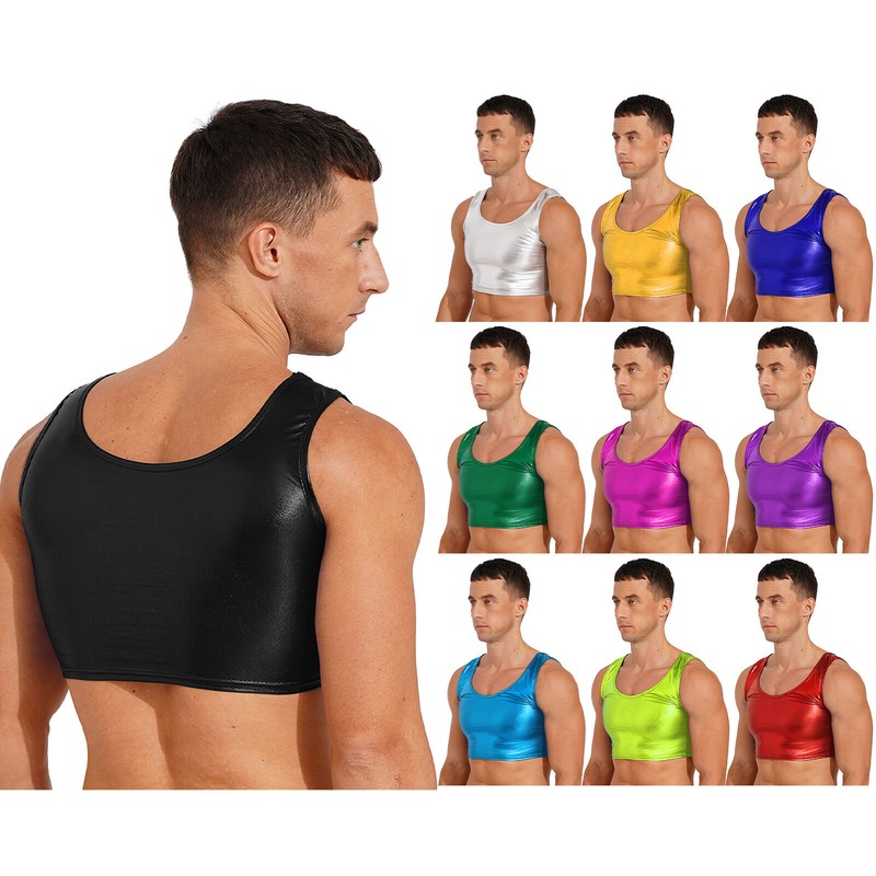 Mens Glossy U Neck Tank Tops Solid Color Sleeveless Crop Top Vest.