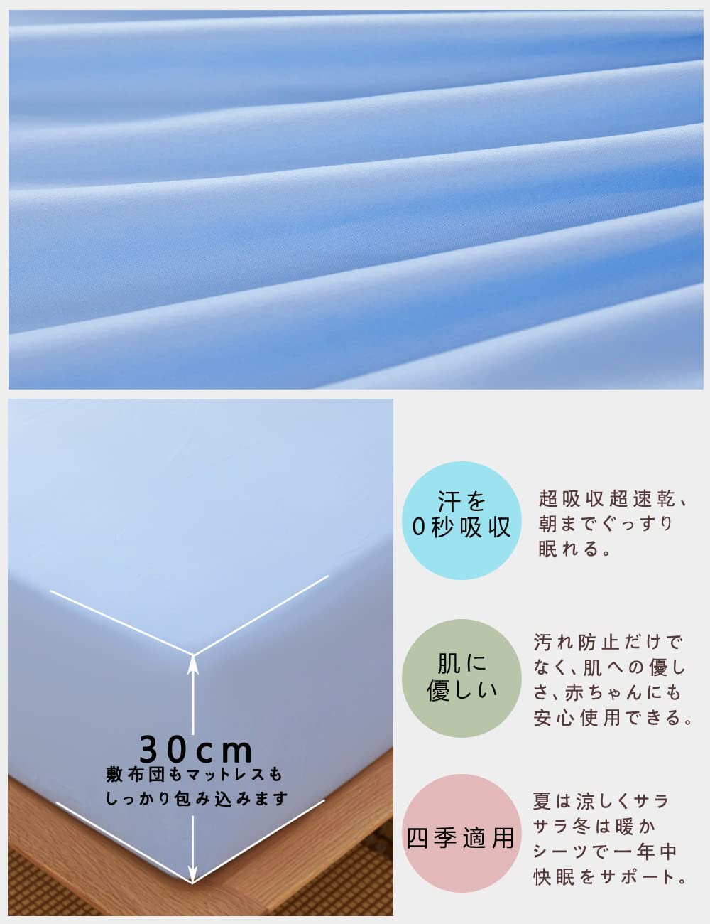 [Size of futon cover] Single futon cover: 105x215cm (The gusset part is about 30cm, so it will wrap both the futon and the mattress tightly.) ■ [Antibacterial, deodorizing, and anti-mite processing] It dries quickly after washing, and the material is resistant to deformation and wrinkles, so it will have a nice finish. It has excellent water absorption and is antibacterial and deodorizing, so you can use it comfortably all year round. ■ [360° all-around protection]: Full body rubber, easy to put on and take off, and wraps the corners of the mattress perfectly. It can be used for beds / mattresses / futons, and it's okay if you sleep in a bad position. You don't have to spend time sorting every morning. It's easy to use because you're busy every day. ■ [Super absorbent, super quick drying] Cool and smooth in summer and warm in winter, this sheet supports a good night's sleep all year round. This is a good night's sleep sheet that not only prevents dirt, but also functions to be gentle on the skin and for a good night's sleep. It can be used all year round. ■ [Can be washed at home]: We are confident in its durability to washing! It can be washed in your home washing machine, so you can always use it clean. We recommend purchasing two or more pieces for extra washing.