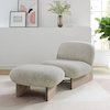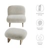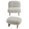 Revel in the contemporary charm of the Loyal Boucle Fabric Accent Chair and Ottoman. This stylish, comfortable lounge chair is crafted from luxurious boucle fabric and defined by its cozy, soft aesthetic and rounded contours. The plush, dense foam padding on this oversized accent chair and ottoman invites you to sit back and relax, making it the perfect spot for reading, lounging, or enjoying a moment of quiet. The accompanying upholstered ottoman provides a comfy footrest, enhancing your relaxation experience. The comfortable chair's textured design stands out, making it a focal point in any room. Supported by a robust ash wood frame, this boucle round chair with ottoman features uniquely designed legs that are wide and flat, providing a solid base while complementing its modern look. Protective foot glides on each leg help prevent scratches and damage to your flooring. Whether placed in a bustling living room or a peaceful reading corner, this armchair with ottoman offers a haven of leisure, integrating with any decor style. Assembly required. Weight Capacity: 330 lbs.