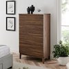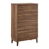 Tap into mid-century aesthetics with the Render 5-Drawer Dresser, a versatile storage solution perfect for organizing your bedroom, living room, or hallway. Featuring five full-extension drawers with a fluted front design, this tall dresser chest offers ample storage space while adding a modern, sophisticated touch. Wrapped in a wood grain laminate finish, the Render Slatted Storage Cabinet complements a variety of decor styles, from minimalist to mid-century modern. Render’s drawers glide smoothly on metal runners, providing easy access to your belongings, whether used as a bedroom dresser, living room organizer, or hallway console. Designed for both style and practicality, this 5-drawer chest delivers a sleek look and functional storage for any room. Assembly required.