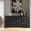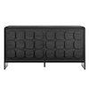 Elevate your living or working space with the Toscana 61'' Mid Century Modern Sideboard featuring rounded corners and a circular pattern motif across the face of the cabinet. This elegant buffet cabinet features a premium laminate finish for a sleek, contemporary design that upgrades any space. Perfect for the dining room, living room, or office, this storage cabinet combines style and functionality. Behind its four soft-close hinged doors, find two spacious storage areas in this credenza cabinet, each equipped with an adjustable shelf to accommodate your needs. Non-marking floor glides keep floors pristine. Whether you use it as a dining room sideboard or media cabinet with doors, its versatile design makes it an excellent choice for any setting. Capable of supporting wall-mounted TVs up to 68 inches, Toscana is an ideal tv media console or entertainment stand. Transform your space with this modern storage cabinet that brings a touch of mid-century elegance to your home. Assembly required.