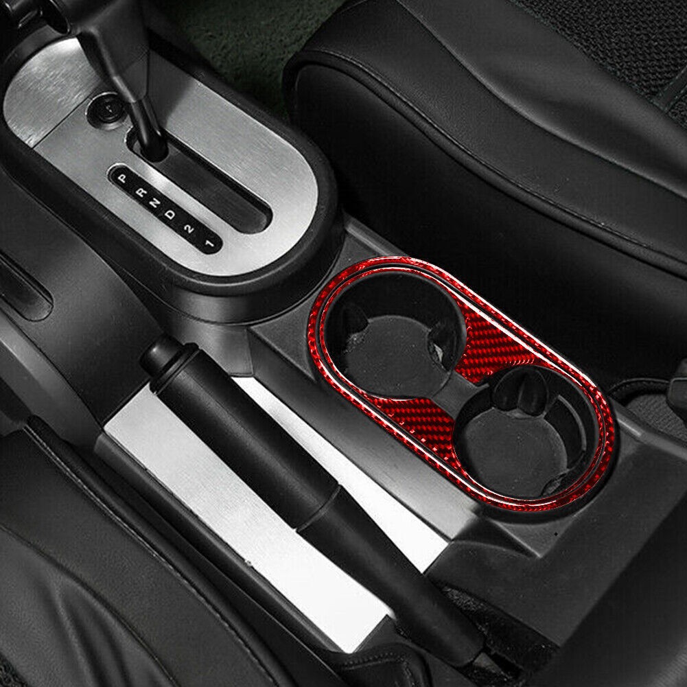 Red Carbon Fiber Center Console Cup Holder Frame Trim For Jeep Wrangler 2007-10