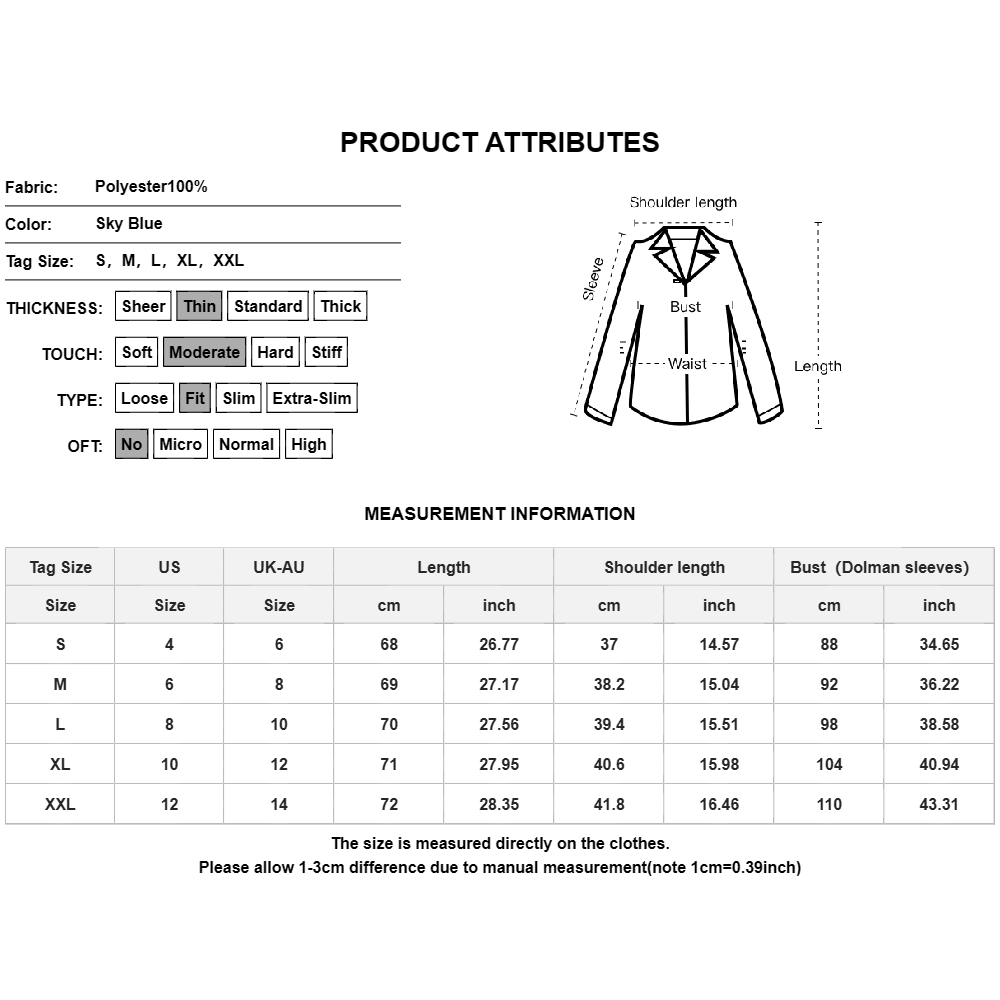 Tag Size | US | UK-AU | Length | Shoulder length | Bust(Dolman sleeves) | |||