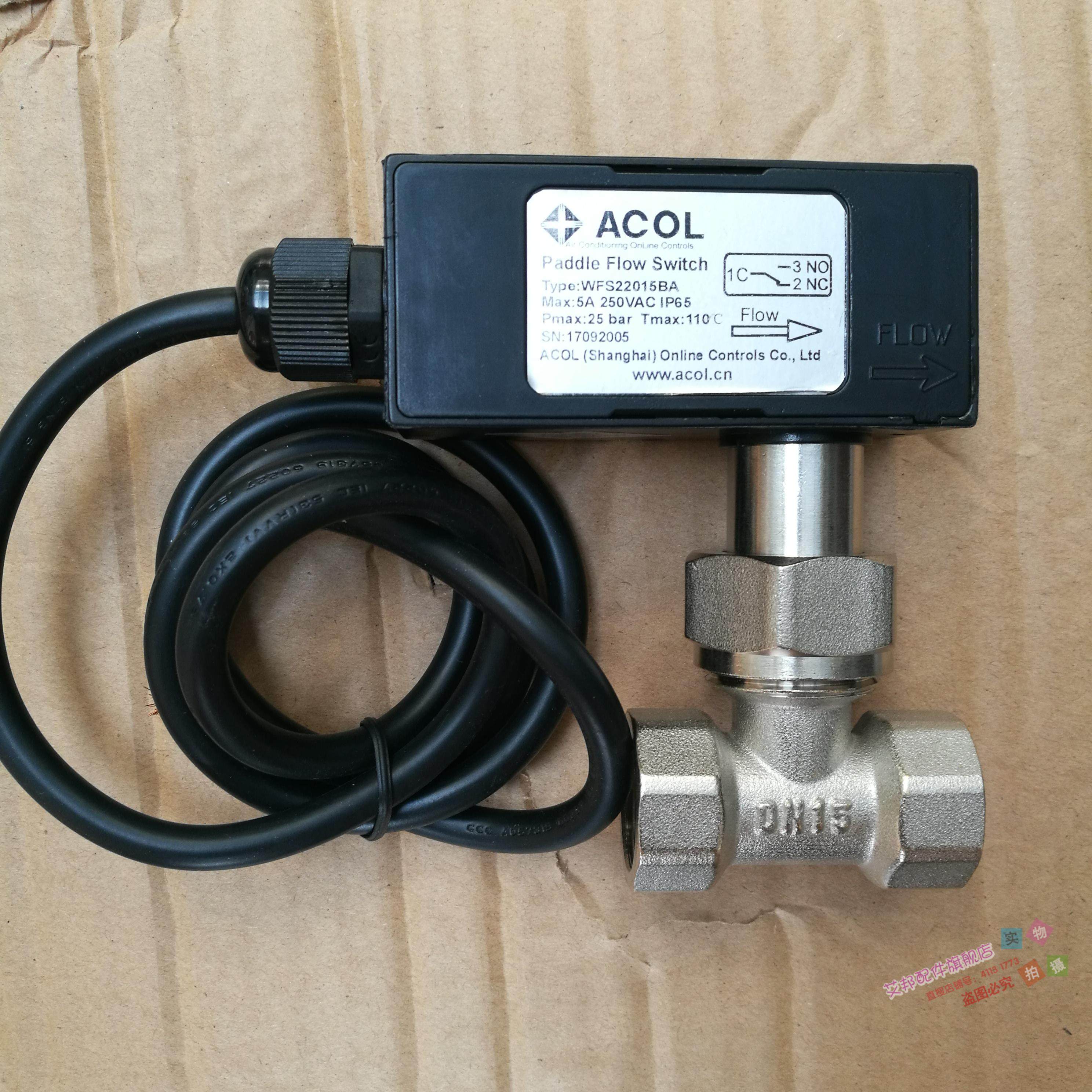 ACOL Anchao baffle type water flow switch DN15 WFS22015, DN20 WFS22020, DN25 WFS22025, DN40 WFS22040, DN50 WFS22050Model description at the end:(Such as: WFS22020BA, WFS22020BC, WFS22020BE, WFS22020BF, etc.)BA is the inner wire tee, BC is the outer wire tee, BE in-line without tee (outer wire interface), BF in-line without tee (inner wire interface)BF:
