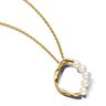 • This necklace features a slightly twisted organically-shaped 14k gold-plated oval pendant with a row of five treated freshwater cultured pearls.
