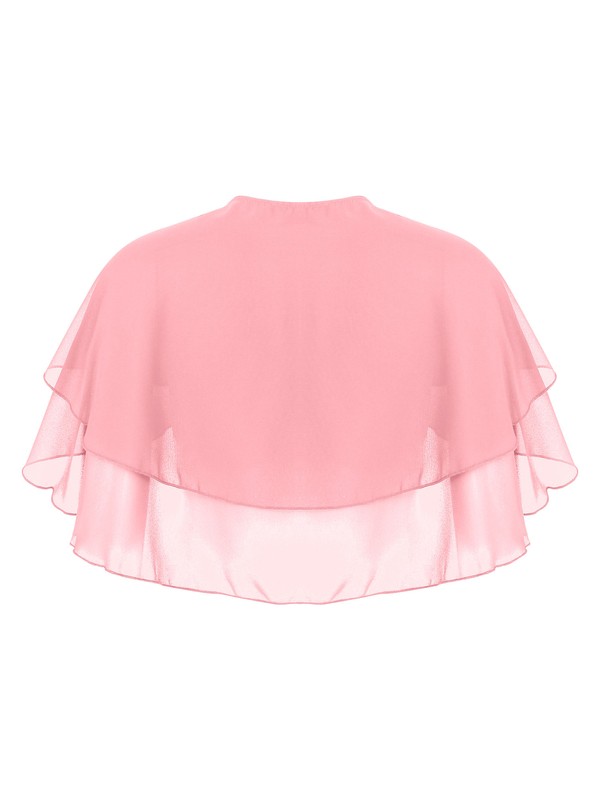 Women elegant pure color chiffon shawl cape ruffle 2-Layer chiffon wraps bolero dress accessory for party wedding.
