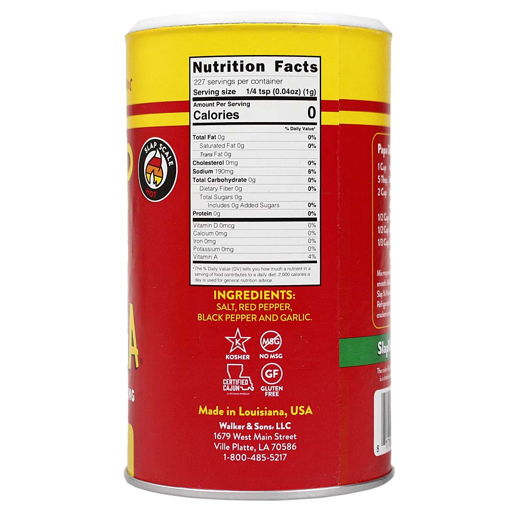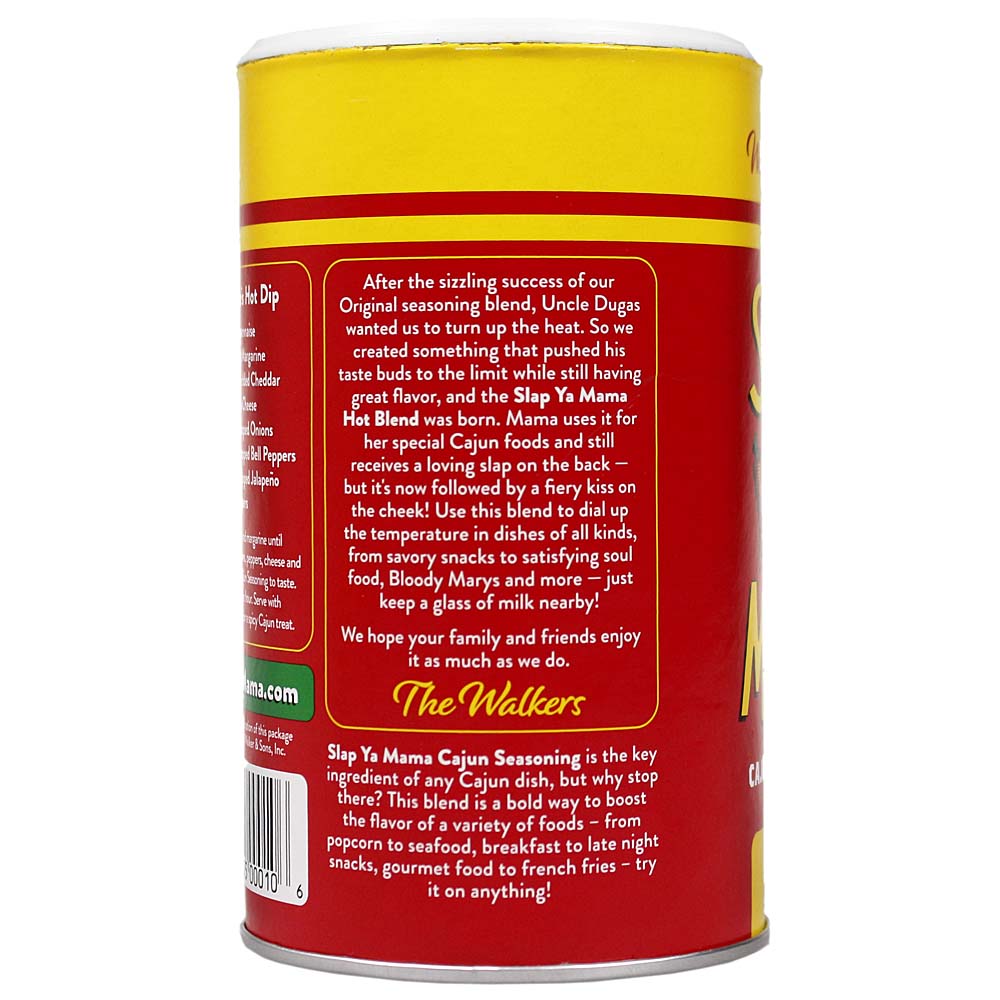 Straight from Louisiana to your kitchen pantry, it doesn't get more authentic Cajun than this! Here's a Cajun blend with some extra KICK! Extremely versatile and easy to use, Slap Ya Mama's HOT Blend Cajun All Purpose Seasoning will bring delicious heat and spicy Cajun flavor to anything you add it to. An intense blast is yours for any meats you grill, smoke, or fry. It's also what you'll reach for when creating an incredible spicy batch of jambalaya, gumbo, etouffee, shrimp, or crawfish. Slap Ya Mama HOT Blend Cajun Seasoning is a great mixture of spices that can be used on any dish. Full of flavor and heat, the award-winning Slap Ya Mama brand seasoning is recommended for everything from popcorn to popcorn shrimp, breakfast to late-night snacks, and gourmet foods to French fries. Give your favorite dish that Bayou flare and taste why millions trust Slap Ya Mama! It's gluten-free, MSG-free, Kosher, and certified Cajun.