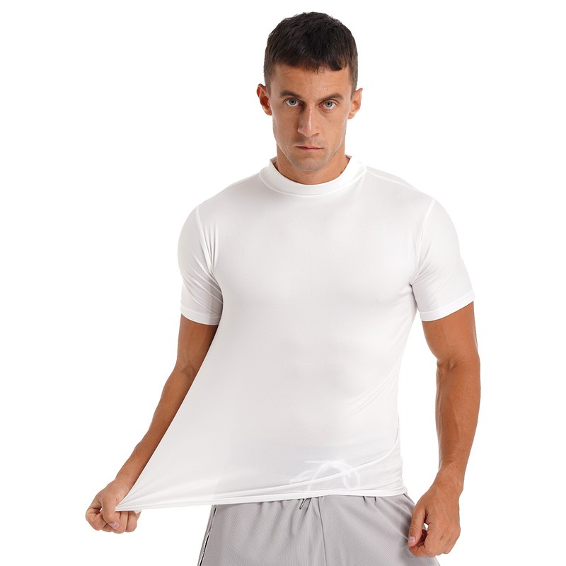 Mens Fashion Mock Neck Short Sleeve T-shirt Casual Solid Color Slim Fit Tops Undershirt.