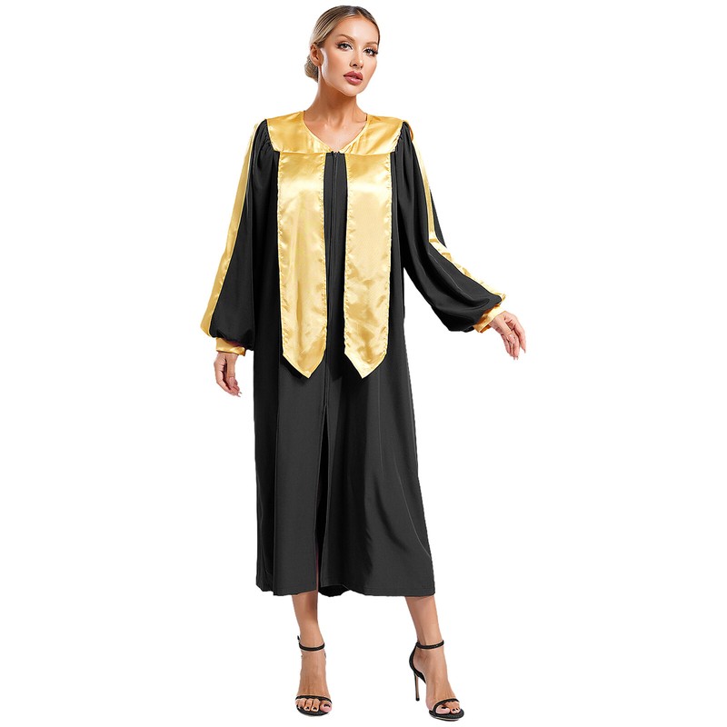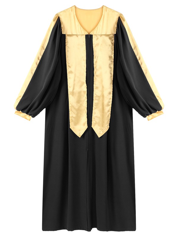 Adult choir robe with satin hanging stole at the front, the color block patchwork design adds fashion elements.