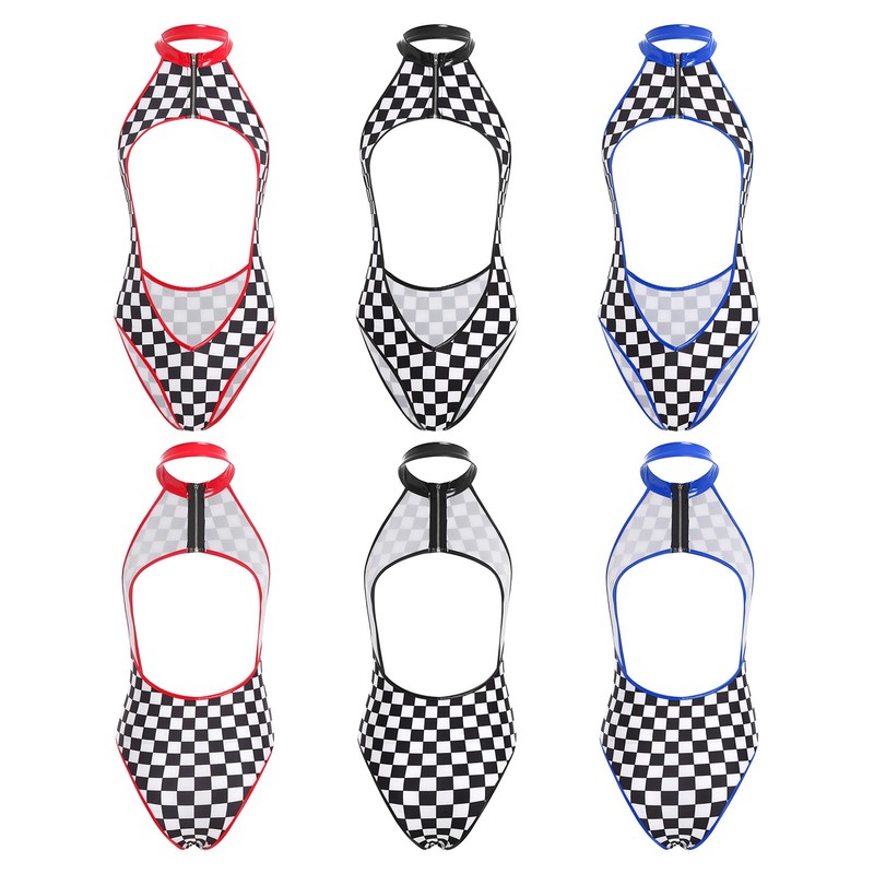 Halter neck with straps tie at back, sleeveless and keyhole back opening, high cut legs, great to show off your body curves.