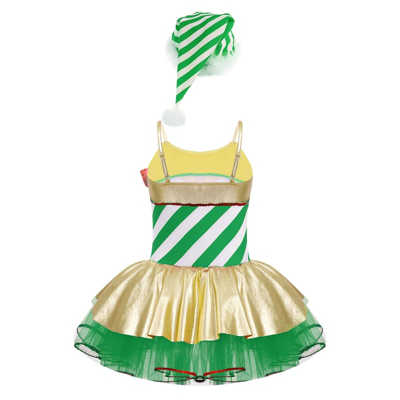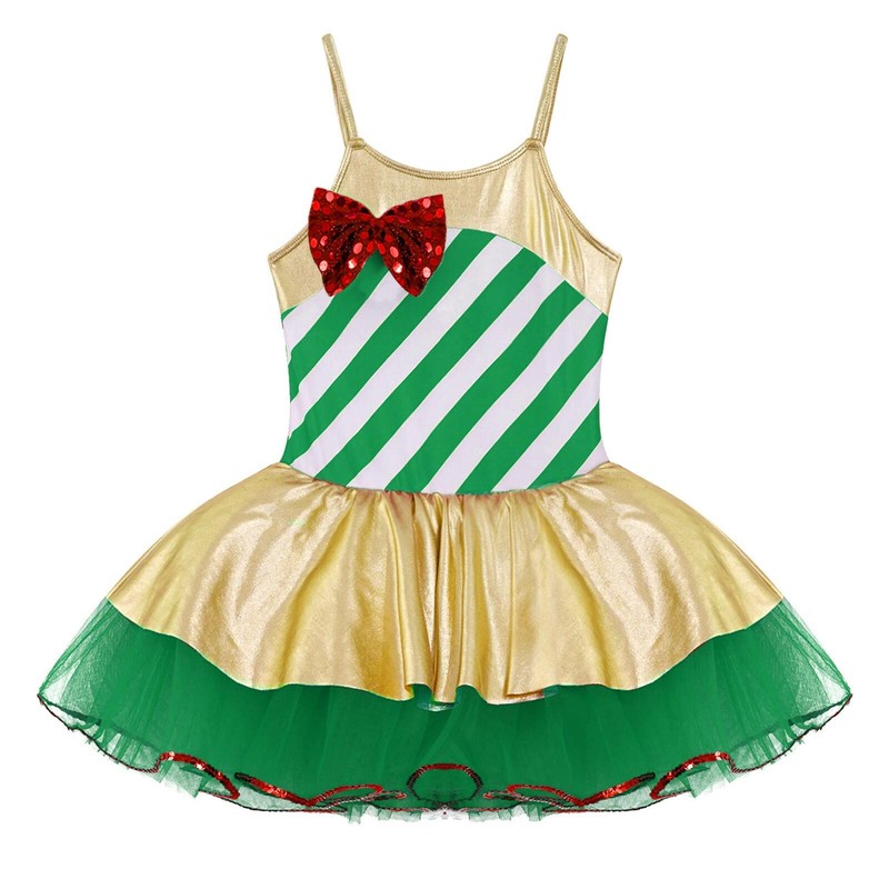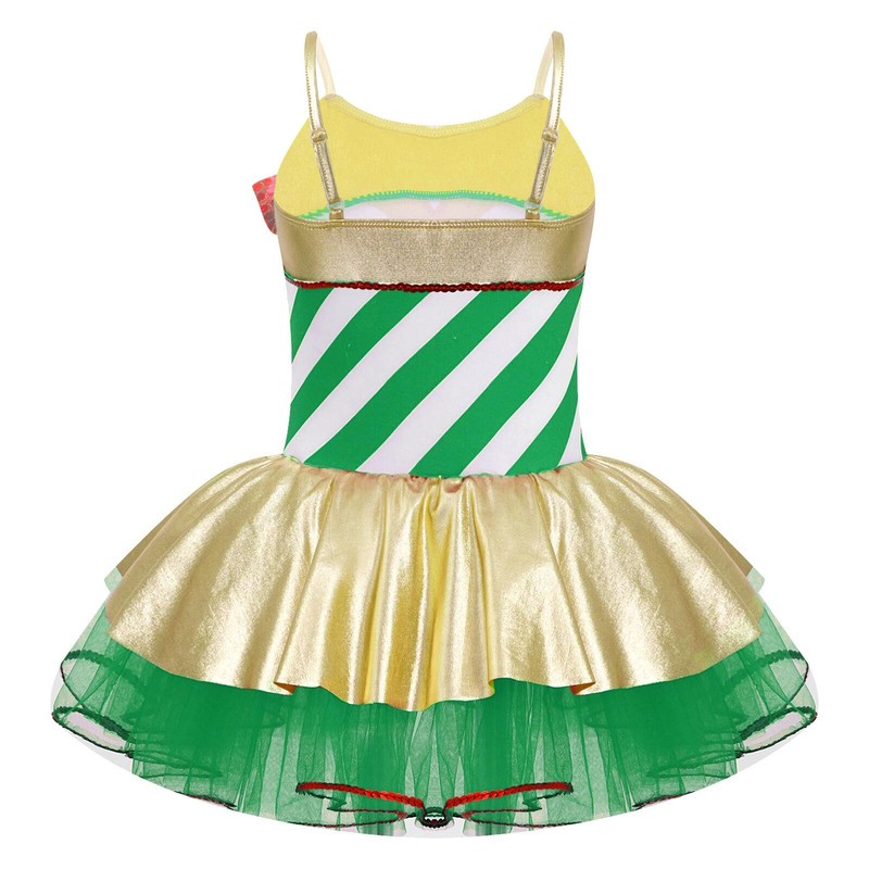 Tutu leotard dress is designed with adjustable shoulder straps, striped patchwork style.