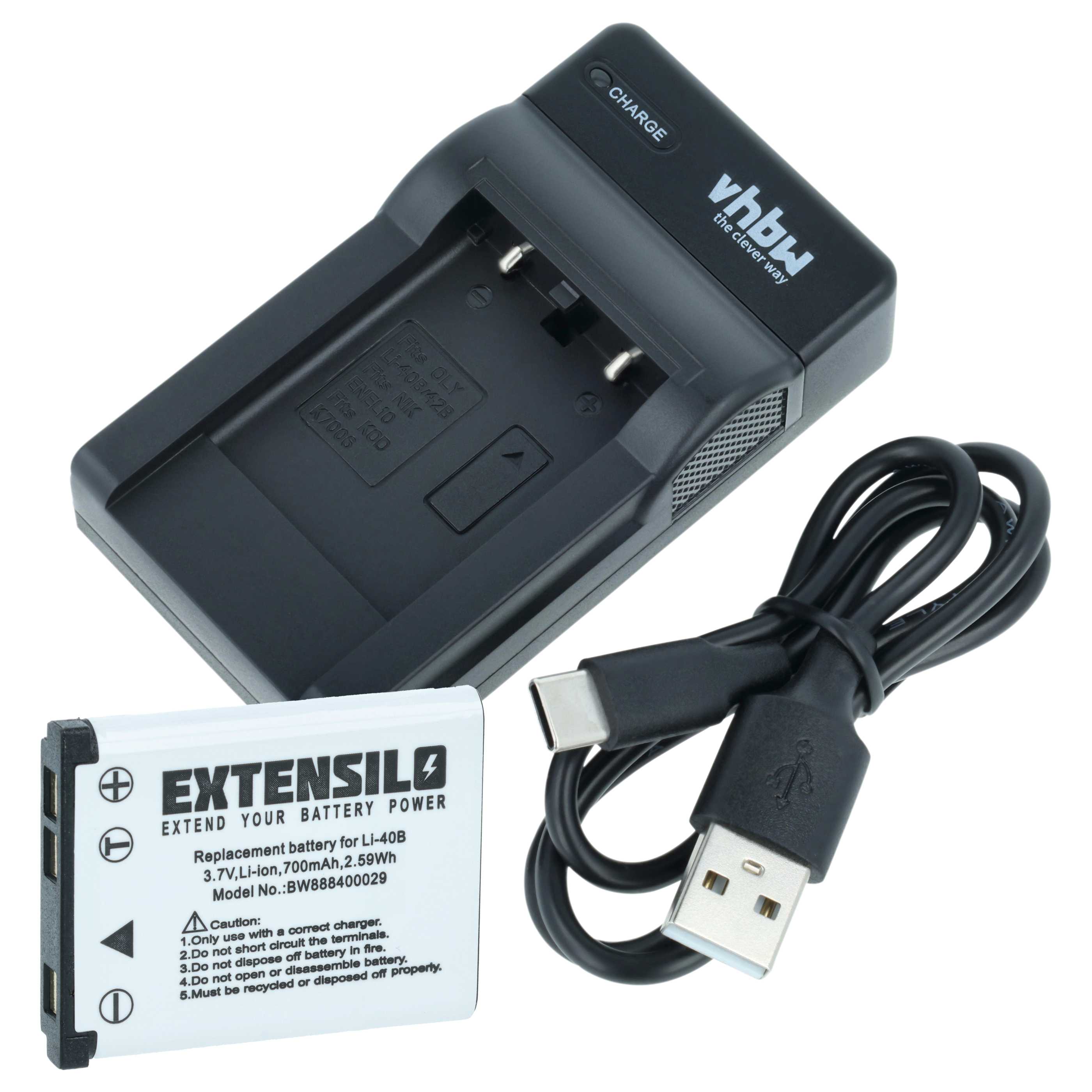 EXTENSILO 3-teiliges Ladeset (1x Ladeschale, 1x Ladekabel, 1x Akku) für Maginon Z 1650, Z 1655, SZ 24, SZ 10, SZ 125, Z 1600 Kamera