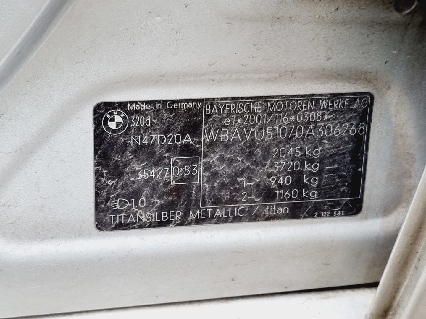 • Fahrgestellnummer : WBAVU51070A306268