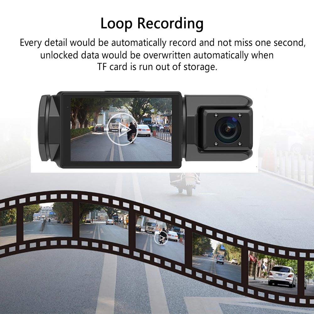 1. Dual-Kamera-Aufnahme: Dieser Fahrtenschreiber ist mit zwei Kameras ausgestattet. Eine Kamera zeichnet die Front Ihres Fahrzeugs auf, die andere den Innenraum.