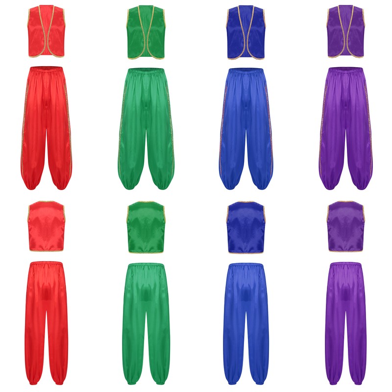 Mens Vest And Pants Gold Trim Arabian Prince Suit Halloween Fairytales Costume