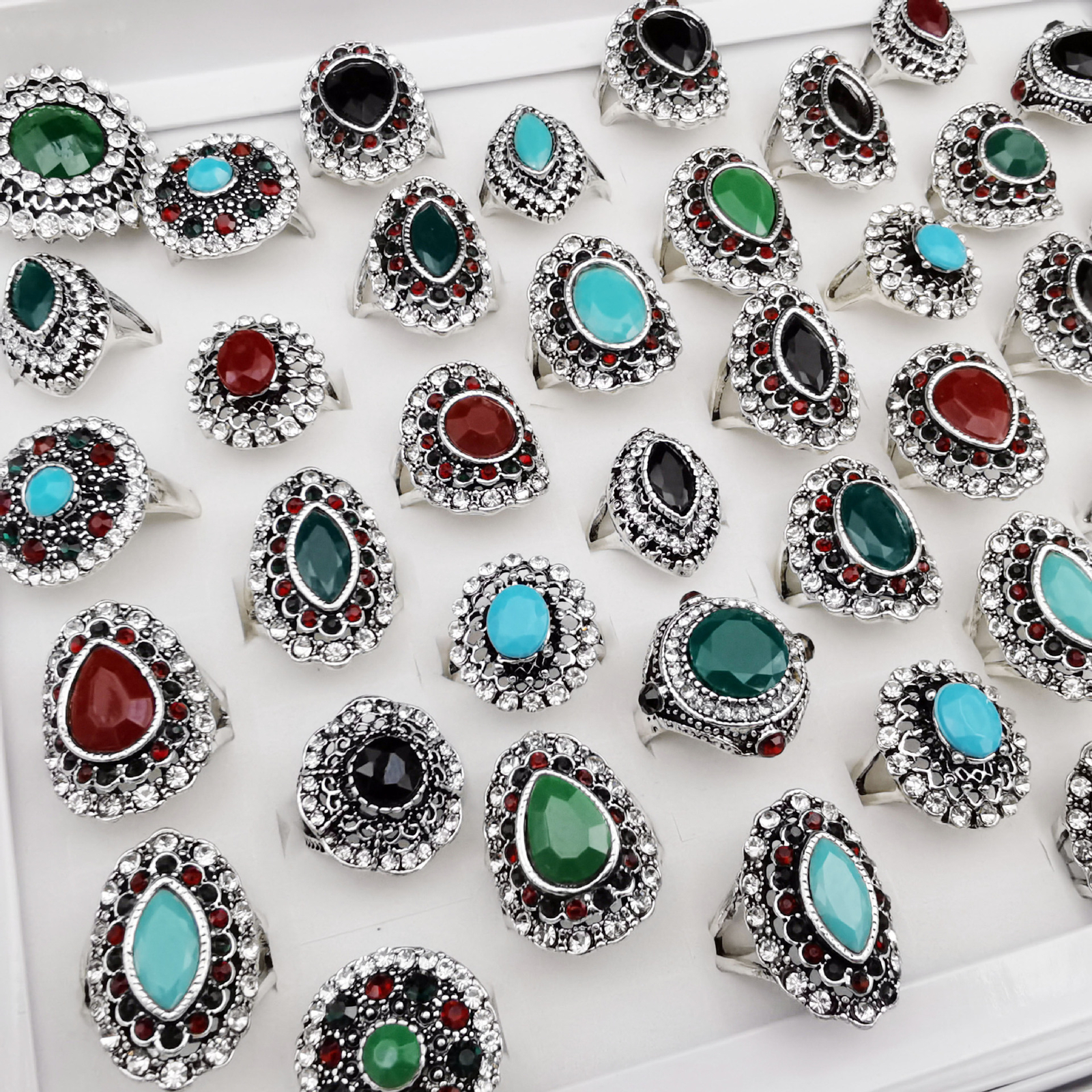 New Style Wholesale Mix Lots 30-100pcs Rhinestone Stone Silver Plated Lady Rings