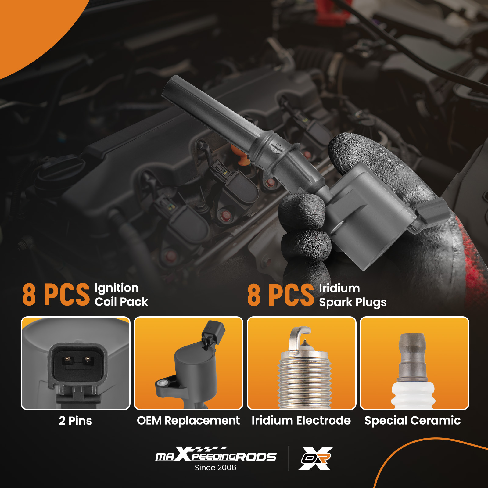 8 PCS Ignition Coils + 8 PCS Iridium Spark Plugs(Showing as the picture)