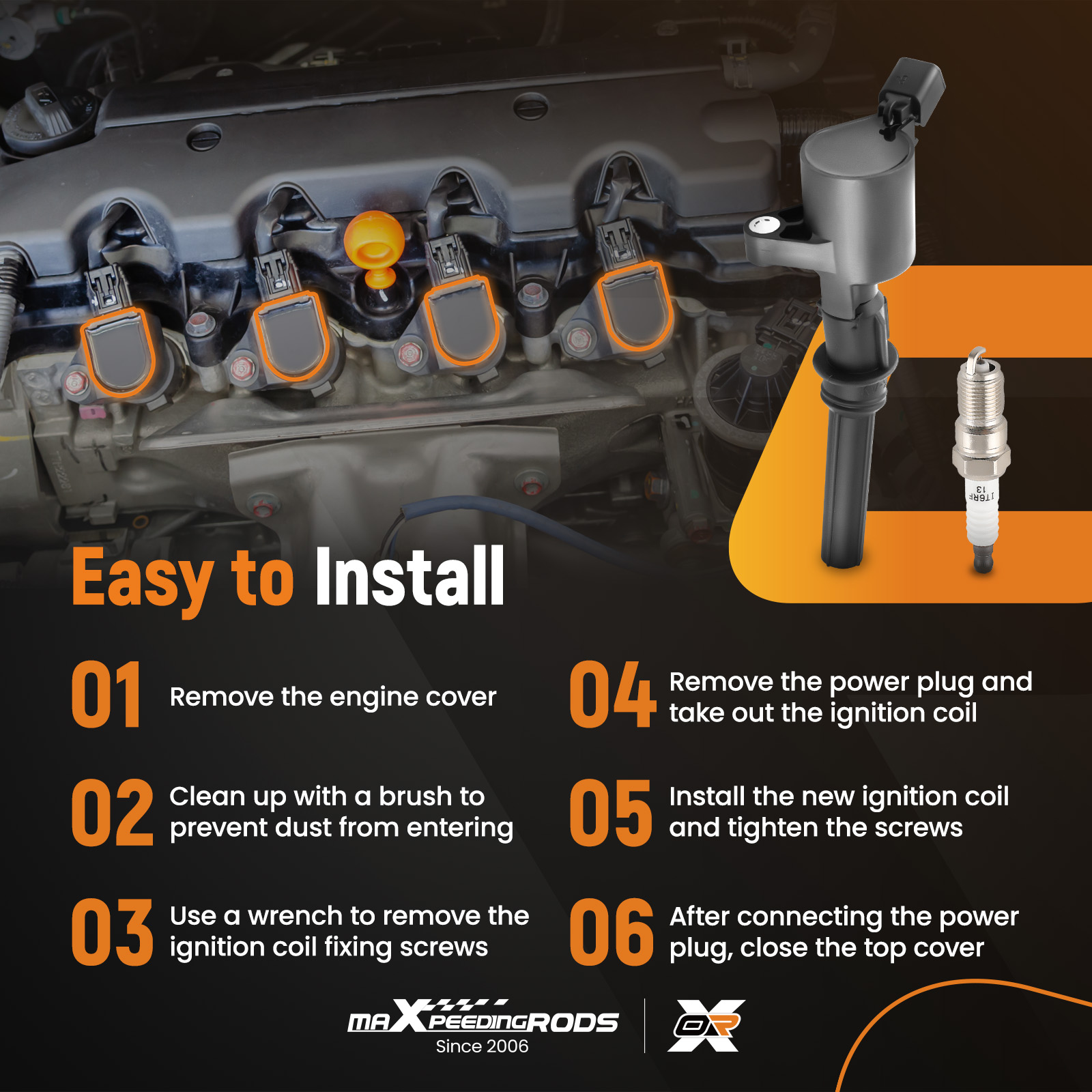 A faulty ignition coil & spark plug may result in engine misfire, rough engine idle, decrease in power, poor fuel economy etc. Every component either matches or improves on the OE design to ensure fast and easy installation with superior performance and reliability, to provide superior cold-start performance and a smoother running engine.