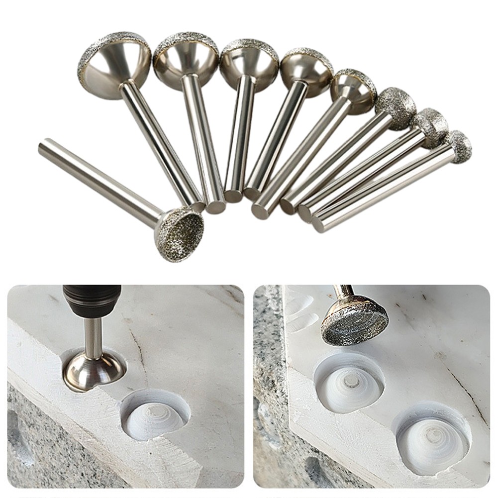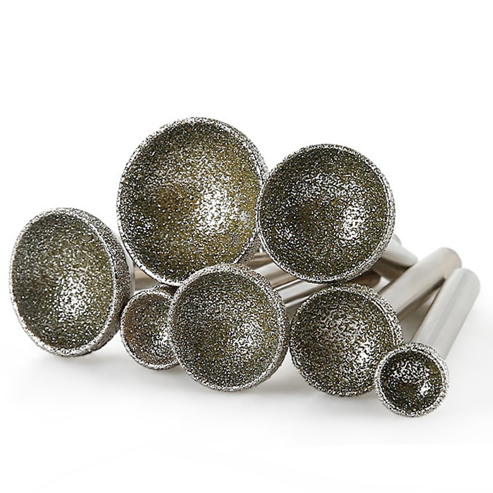 emery Mounted Point 10-25mm Head Diameter Spherical Concave Head Bead Coarse Grinding Bit for Jade Amber Stone Beeswax