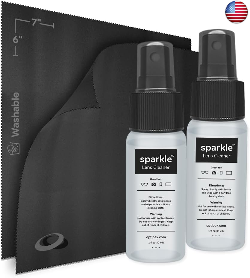 Sparkle Anti-Reflective Lens Cleaner Spray kit | (2) 1oz Glasses Cleaner Spray + (2) Microfiber Cloth for Eyeglasses, Sunglasses, Lenses, Screens and Camera Cleaning Kit (4 Piece Set)