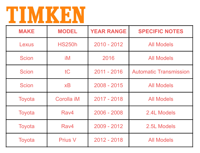 | Scion | tC | 2011 - 2016 | Automatic Transmission |