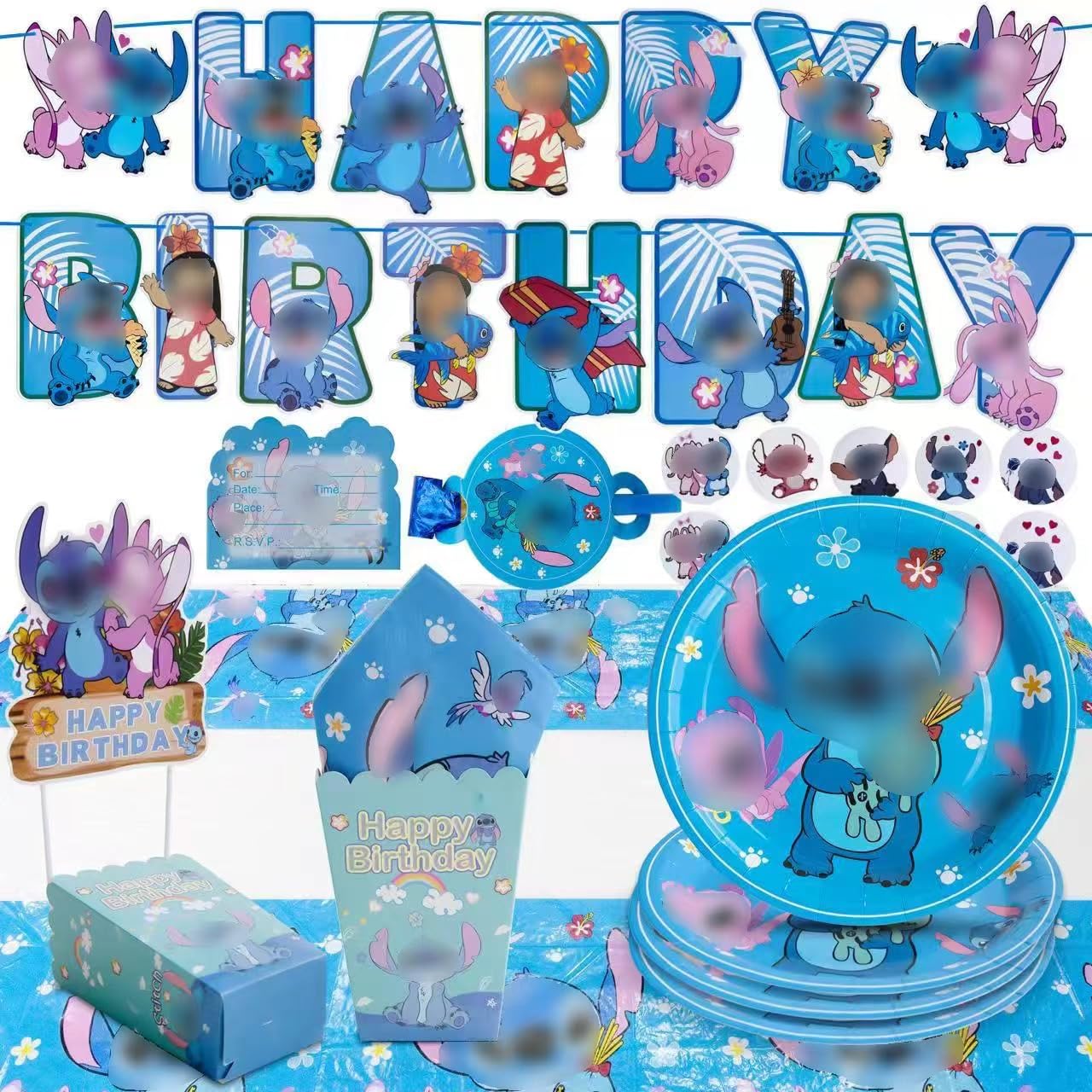 Kids Birthday Party Supplies and Decorations Set, Tablecloth, plates,Happy Birthday Banner, Stickers , caketopper, invitation card with envelopes,16 Blowers ,16 Napkins and popcorn boxes for16 guest