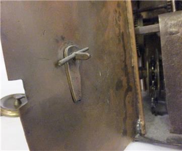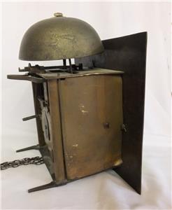A really good and very interesting example of an early eighteenth century hook and spike wall clock, unsigned, but obviously an Oxfordshire Quaker clock, and details of its construction make me certain that it was made by John Nethercott of Long Compton, one of the earliest makers of these clocks, who died in 1735. ( see notes below)