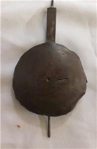 I note also that the iron hoop is riveted to the brass top plate, The corner pillars are brass, and so the spikes are riveted to the iron bottom plate ( most other makers use iron pillars and the spikes are forged as one piece with the back pillars)
