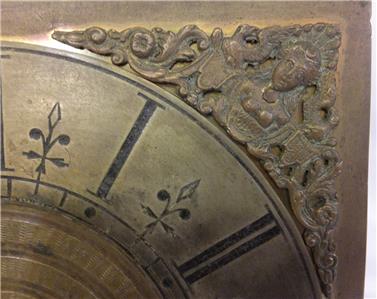 The spandrels are the small "busty lady" type, commonly used on these clocks, and the casting of them is quite sharp with plenty of detail, suggesting an early use of these spandrels, later ones being often quite crude.