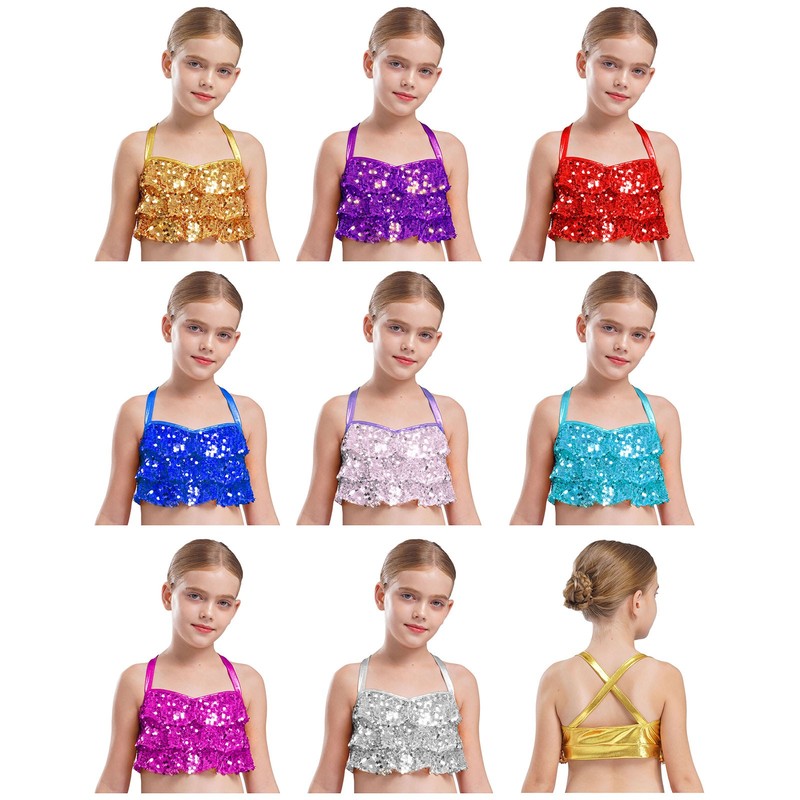 The color-block, shiny sequins and tulle inner layer create a festive and glamorous look.