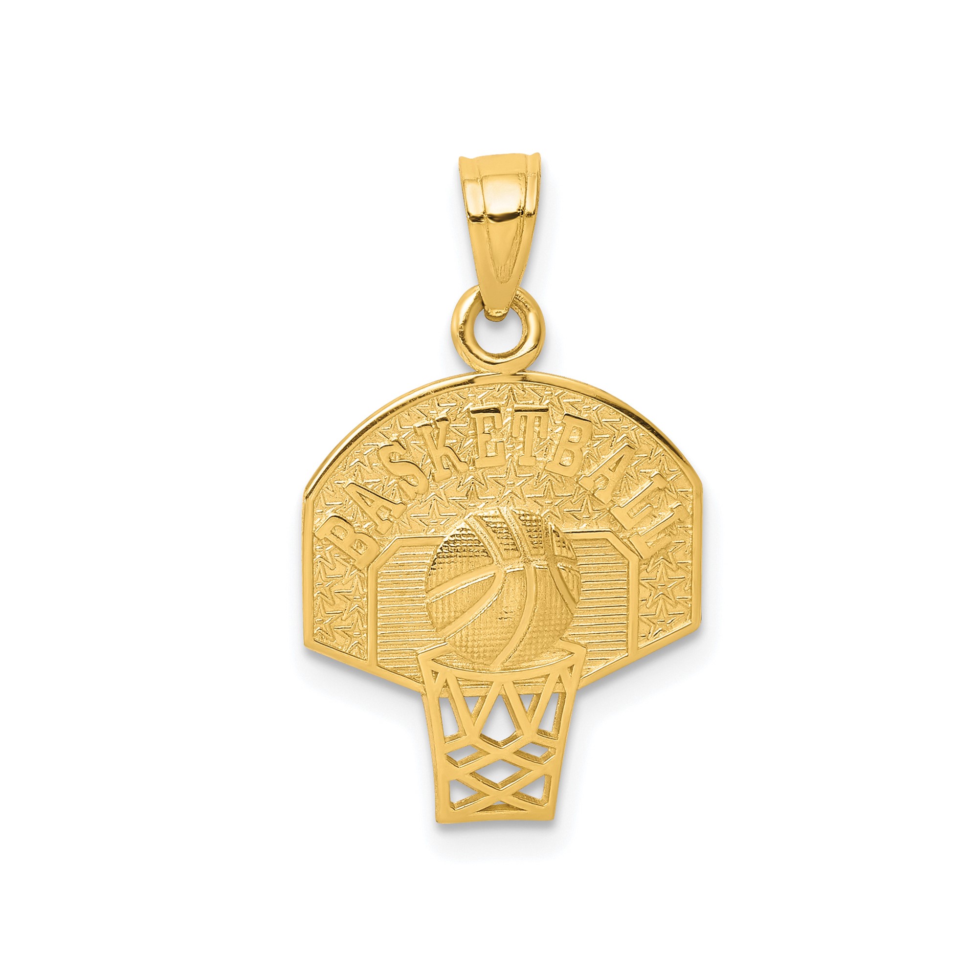 10k Yellow Gold Basketball Pendant Hoop Ball Star Accents Sports Charm Unisex