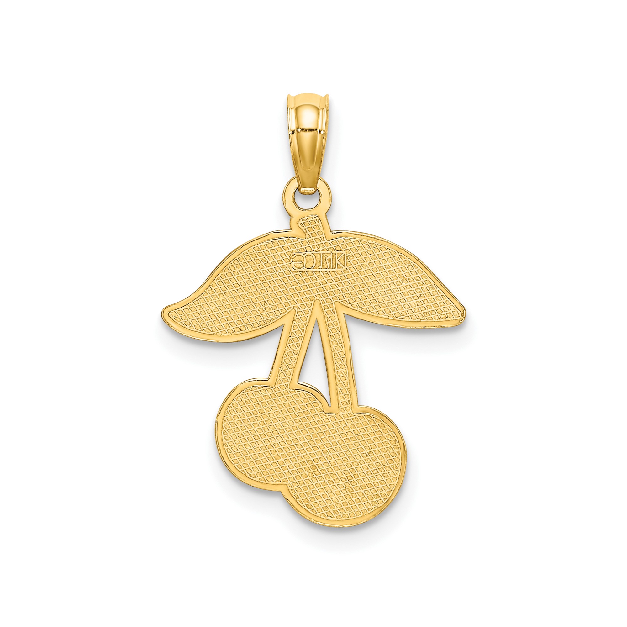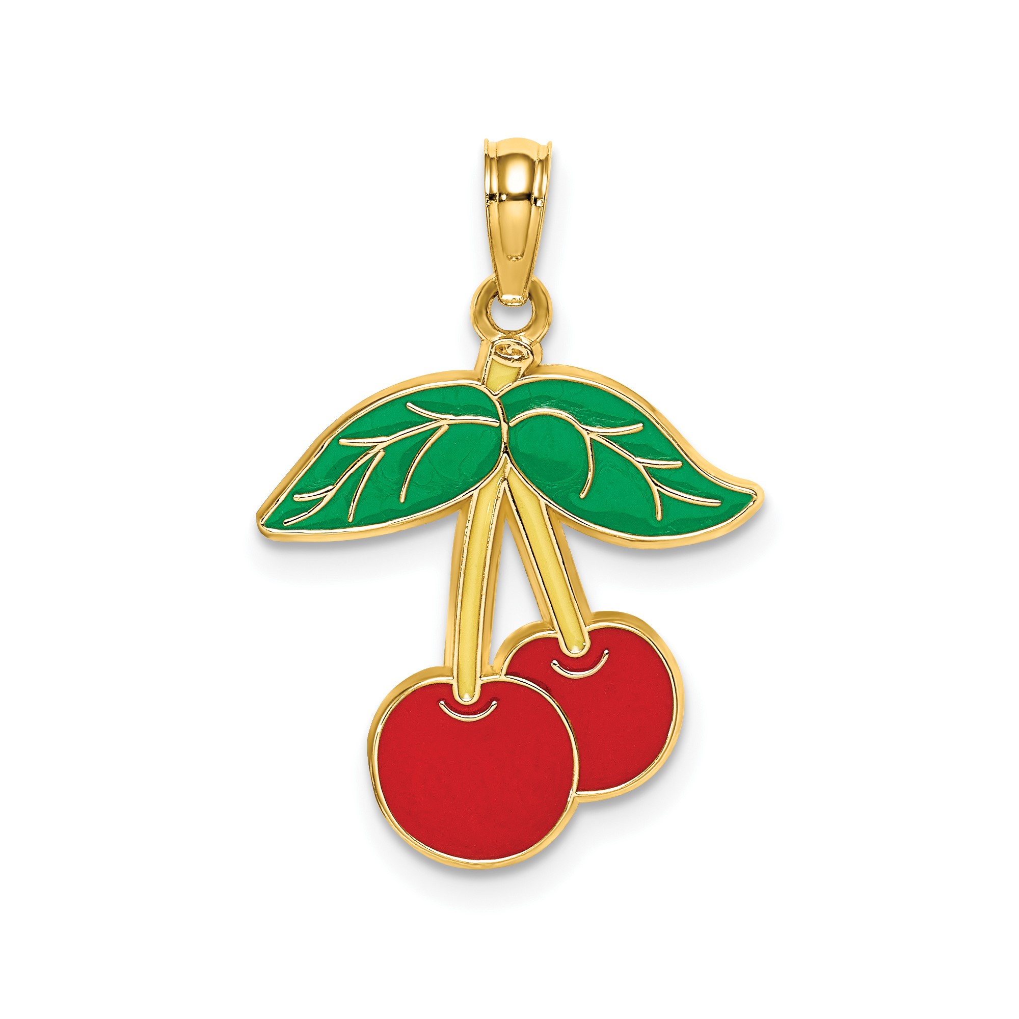 14k Yellow Gold Cherry Pendant Red Enamel Fruit Charm for Women Nature Summer